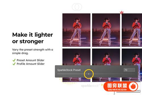 ✔️ 可调节强度,支持 Lightroom 的“预设数量”滑块