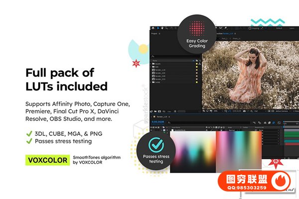 SparkleStock LUT与 Affinity Photo、Premiere Pro 22.0+、Final Cut Pro v10.4+、DaVinci Resolve、Avid Media Composer、Cyberlink ColorDirector、OBS Studio、Vegas Pro、Spark AR Studio、Nuke、Filmora 兼容