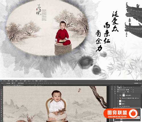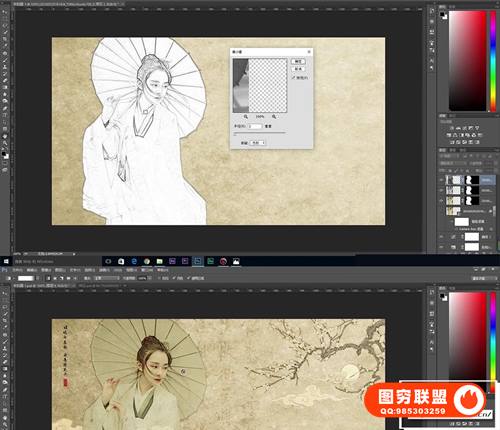 图穷联 » [视频教程]PS国风古风工笔画效果制作案例视频教程+PSD模板