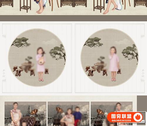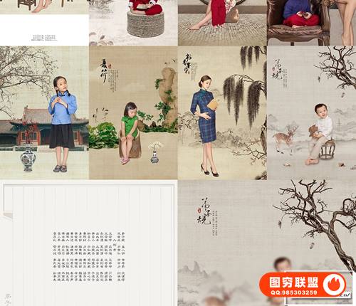 包含数十款儿童孕妇亲子PS工笔画复古风格PSD模板
