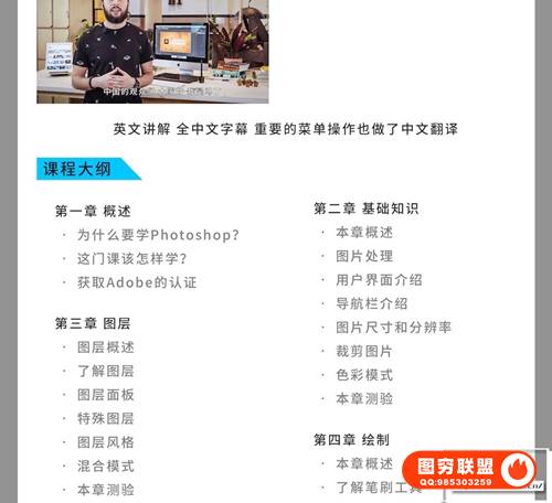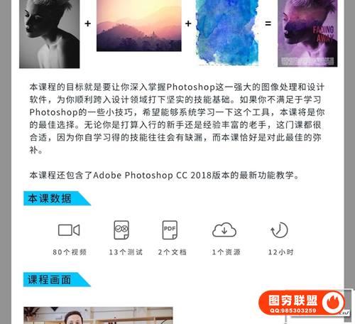 本课程还包含了Adobe Photoshop CC 2018版本的最新功能教学。共80节课,长达12小时的精心讲解。英语发音中文字幕文件大小:5G