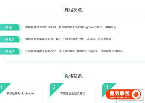 最重要的是Lightroom的学习成本非常低,一学即会~高高手联合知名摄影老师飘飘推出《Lightroom基础课程》课程共分为4大章节37堂课,包含素材