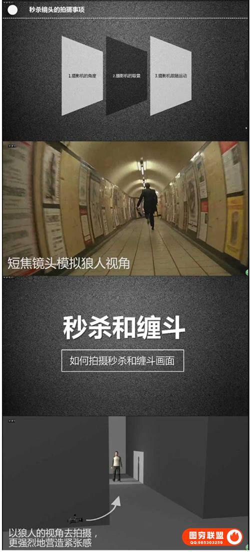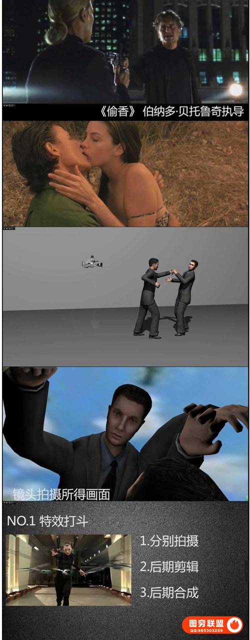 内容:讲述各种不同的故事情节镜头拍摄技法
