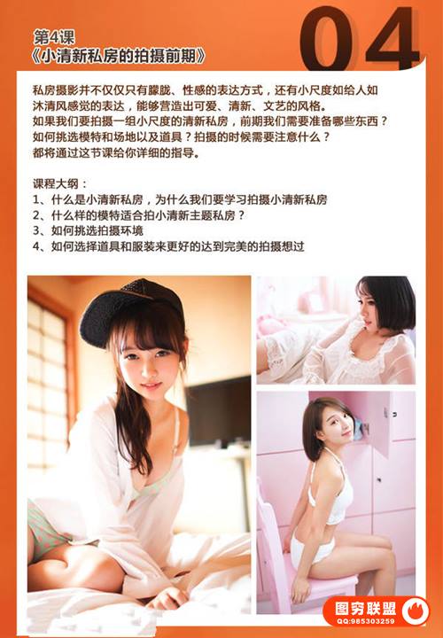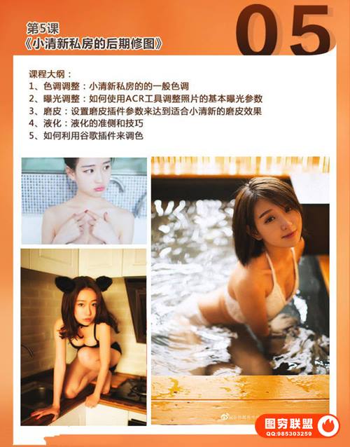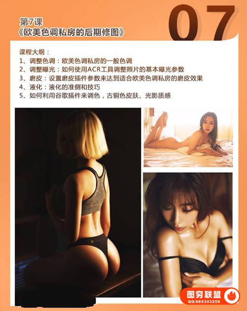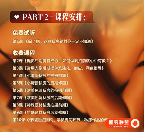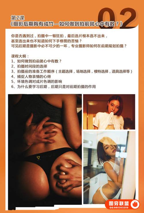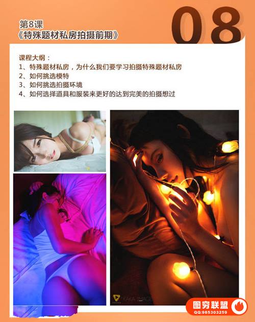 本期我们就带来这套课程教你怎样把私房人像拍的更有味道更有感觉。拍私房不是脱的越多越好看,色彩搭配、质感肌肤、媚而不俗这些都是重点,更具体的介绍请看下方课程预览图介绍。