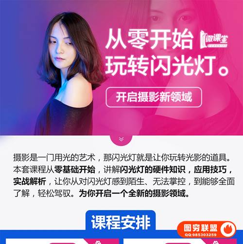 本套课程从零基础开始,讲解闪光灯的硬件知识,应用技巧,实战解析,让你从对闪光灯感到陌生、无法掌控,到能够全面了解,轻松驾驭。为你开启一个全新的摄影领域。
