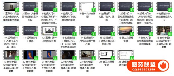 情感人像摄影综合训练大课堂 – 25集全,1080P高清画质无素材,文件大小:8.4G