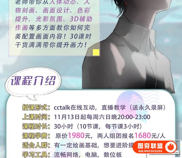 主讲老师:左手甴;插画技法提升班5期视频课程,10节课,每课时3小时详细讲解。课程内容围绕人体动态完善,画面构图与设计,色彩提升,光影氛围,材质刻画,3D软件辅助作画运用技巧、完成度提升。 本课程适合有一定绘画基础(会绘画软件操作,能画出简单人物立绘)的学员提升学习!文件大小:7.87G