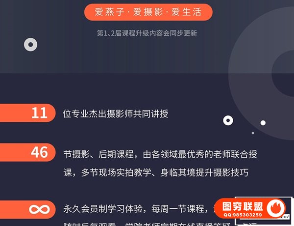 爱燕子学院邀请11位专业杰出的摄影师共同讲授本套综合课程,无论是初学入门,后期修图,还是基础摄影的提升与巩固,都应有尽有。结合实战的细节,融入各种摄影的场景细节,以及后期的细节技巧,让你快速上手摄影的整个流程,成为一名合格的综合摄影师。