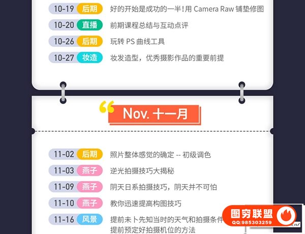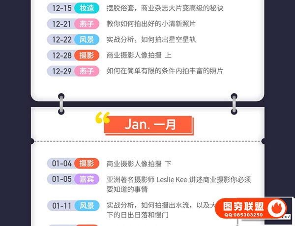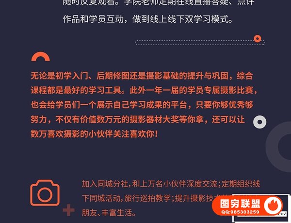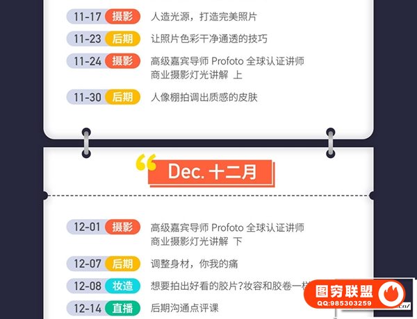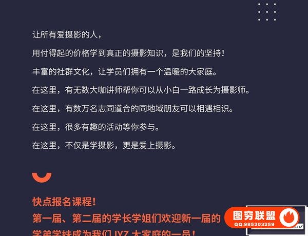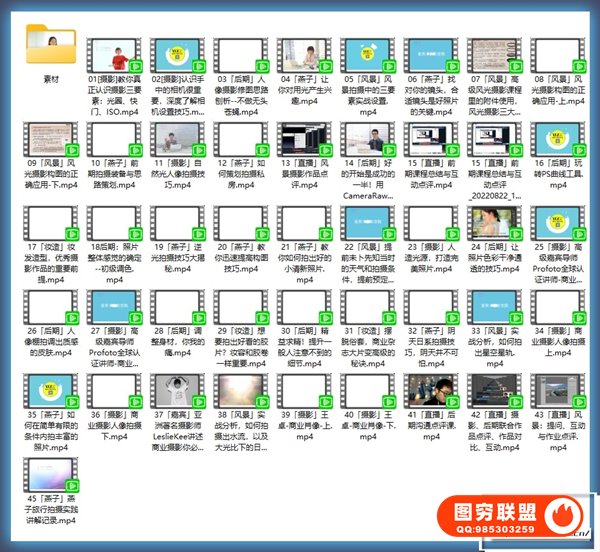 摄影、后期逻程,由各个领域优类的老师联合受教多节现场实拍教学,身临其墙提升摄影技巧。无论是初学入门,后期修图,还是基础摄影的提升与巩固提升摄影技术,都很合适。课程共45节,8.2G