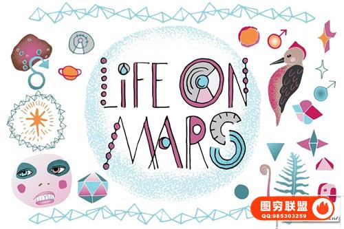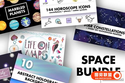 图穷联 » [矢量素材]150+童趣手绘宇宙行星星座图形符号太空背景插画设计矢量素材 Space
