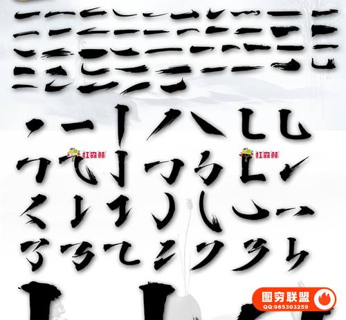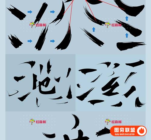 图穷联 » [字体]书法毛笔笔触笔刷字体设计拆字组合矢量素材含教程