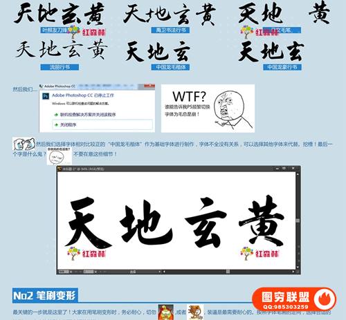 [字体]书法毛笔笔触笔刷字体设计拆字组合矢量素材含教程