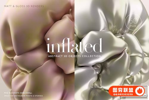 [图片素材]60款可爱抽象充气肥胖臃肿膨胀3D渐变图形创意设计图片素材 Abstract Inflated 3D Objects