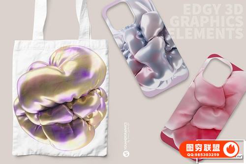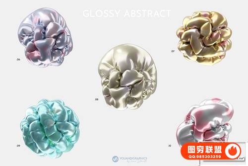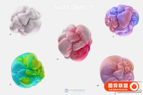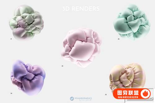 图穷联 » [图片素材]60款可爱抽象充气肥胖臃肿膨胀3D渐变图形创意设计图片素材 Abstra