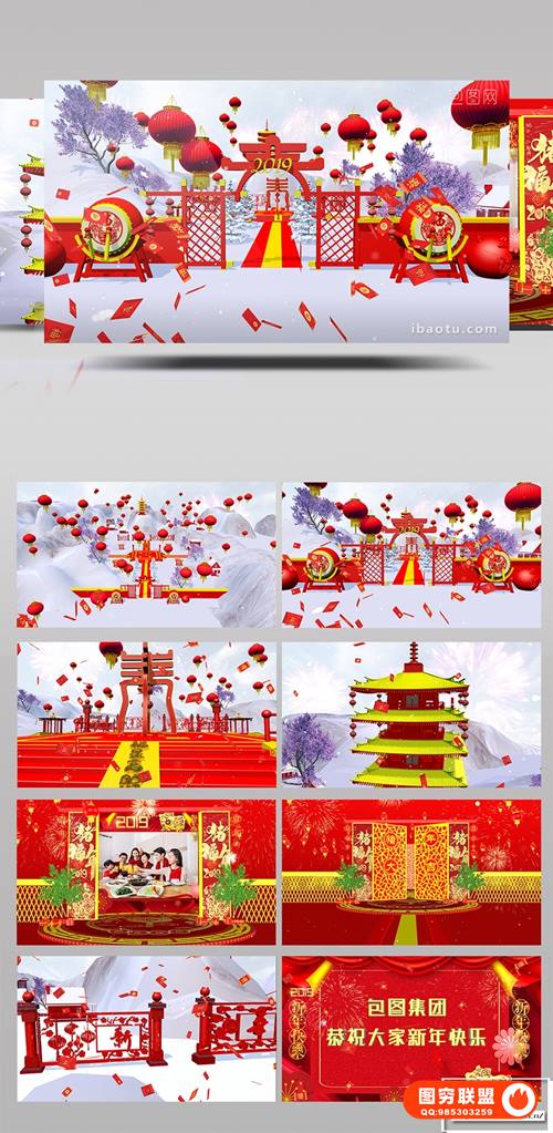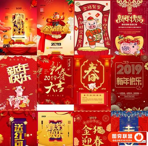 图穷联 » 精选60套2019春节元旦主题新年快乐拜年晚会祝福PS海报AE/PR模板