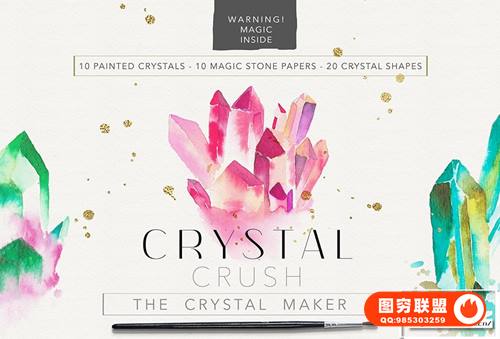 [图片素材]40种手绘水彩斑斓水晶形状背景艺术纹理设计素材 Crystal Crush – The Crystal Maker