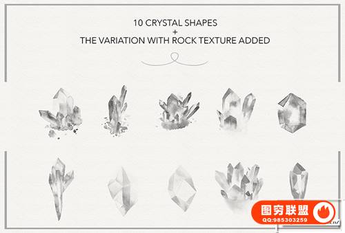 图穷联 » [图片素材]40种手绘水彩斑斓水晶形状背景艺术纹理设计素材 Crystal Crus