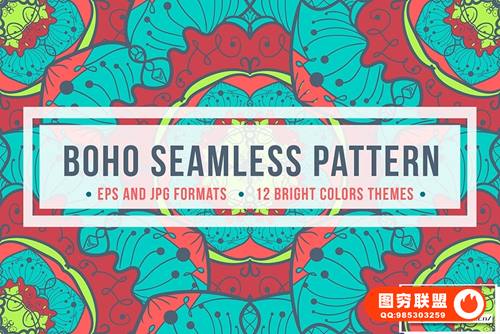 图穷联 » [矢量素材]12款手绘曼陀罗阿拉伯波西米亚民族风格无缝纹理图案矢量素材 Boho O