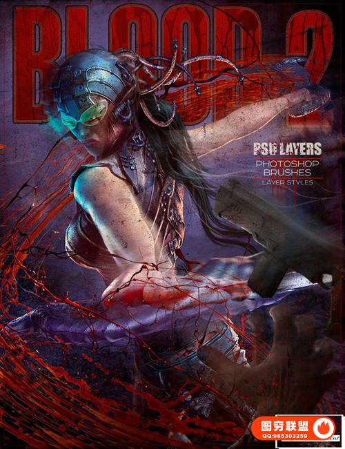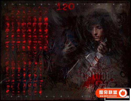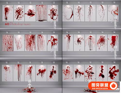 图穷联 » [PS笔刷]120个立体喷溅血迹流淌效果PS笔刷+图层样式 Ron’s