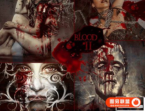 [PS笔刷]120个立体喷溅血迹流淌效果PS笔刷+图层样式 Ron’s Blood II