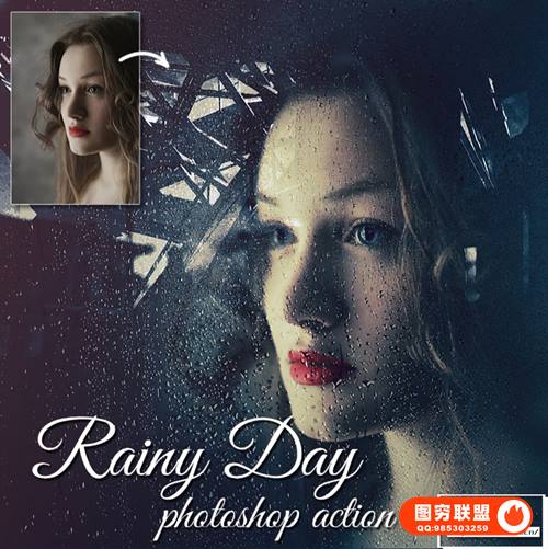 图穷联 » [PS动作]下雨窗户玻璃蒸汽水雾人像效果PS动作 Rainy Day Photosh