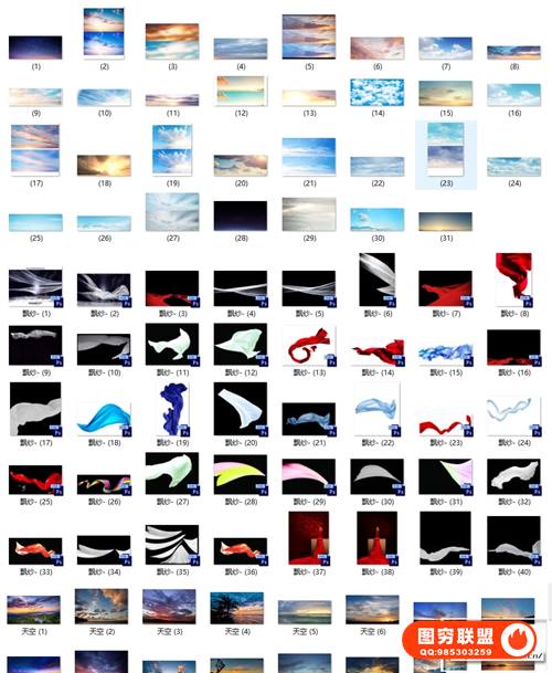 图穷联 » [图片素材]影楼必备300+高清天空云彩飘纱婚纱裙摆PSD合成素材