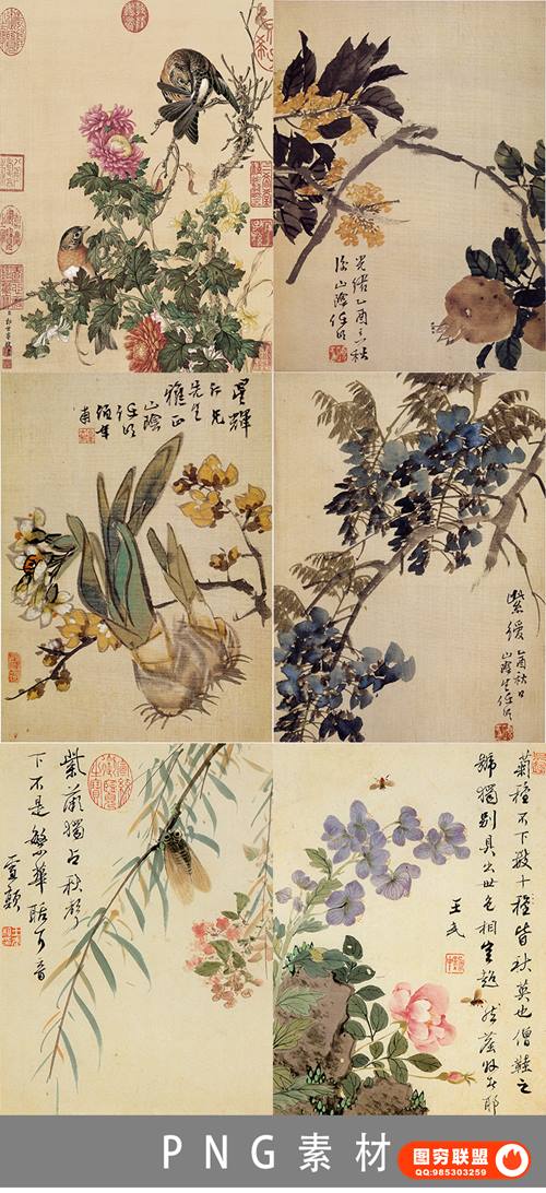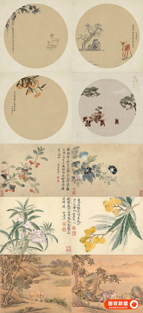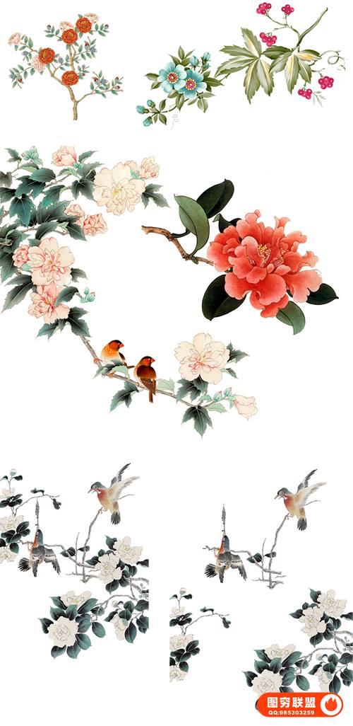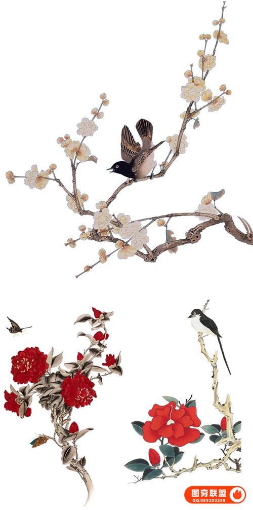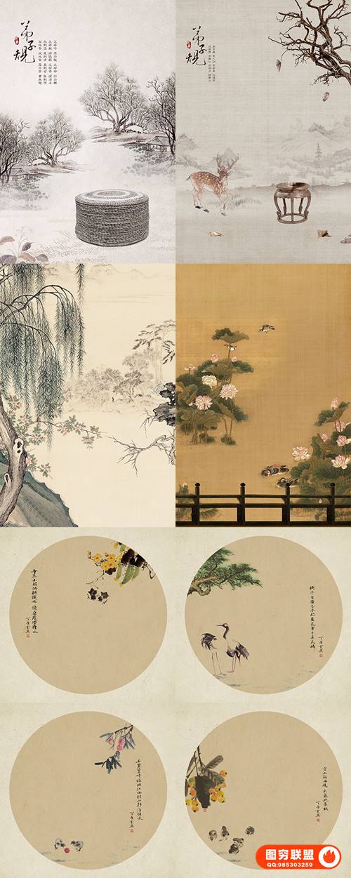 图穷联 » [PSD模板]58套中国风复古风工笔画摄影古装PS设计素材背景花鸟国画宫廷PSD模板