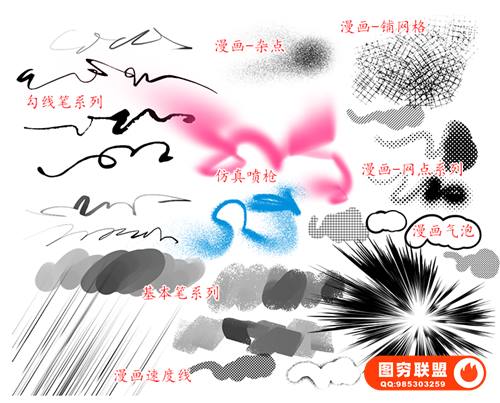 1、漫画:新增标签,内含勾线、网点、特效线、气泡等笔刷