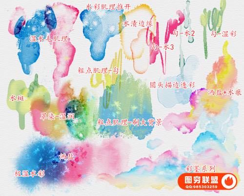 2、水彩:新增湿水系列,粗点肌理系列,可逼真混色的彩墨系列等。 *新增绘制逼真水痕的命令栏。