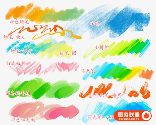5、综合:新增和改进蜡笔系列,粉笔系列,混色毛系列,马克笔系列。