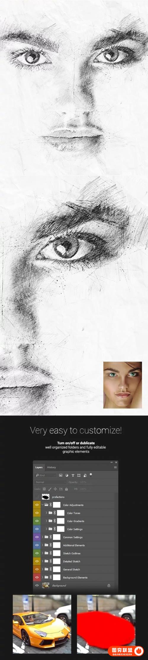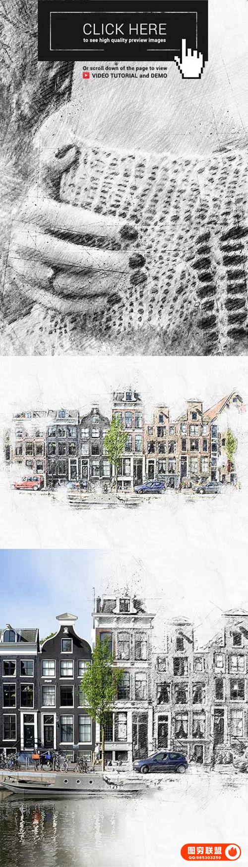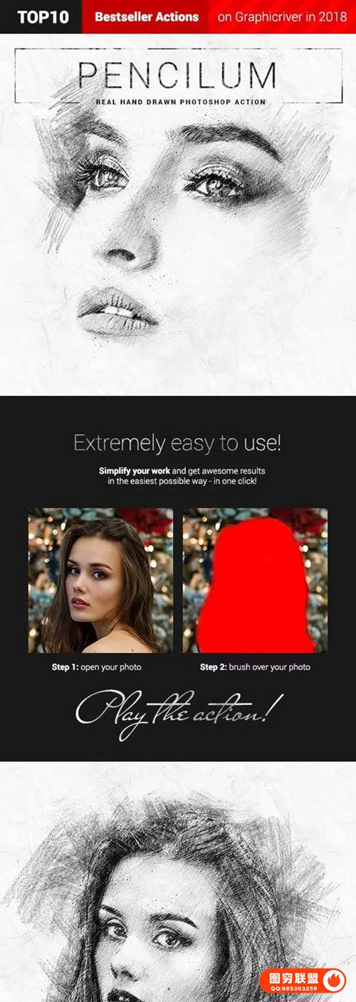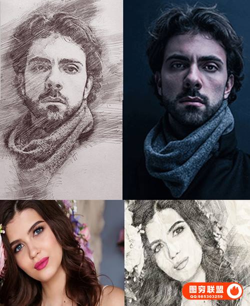 图穷联 » [PS动作]照片一键转美院大师素描/铅笔画效果PS动作