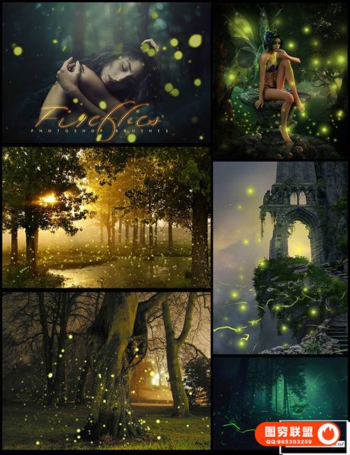 图穷联 » [PS笔刷]Rons梦幻氛围荧光萤火虫魔幻光效笔刷PS后期修图合成素材 Ron