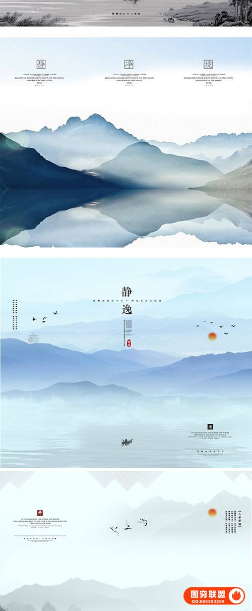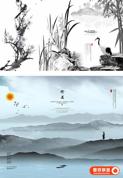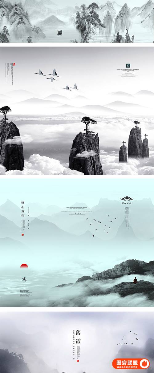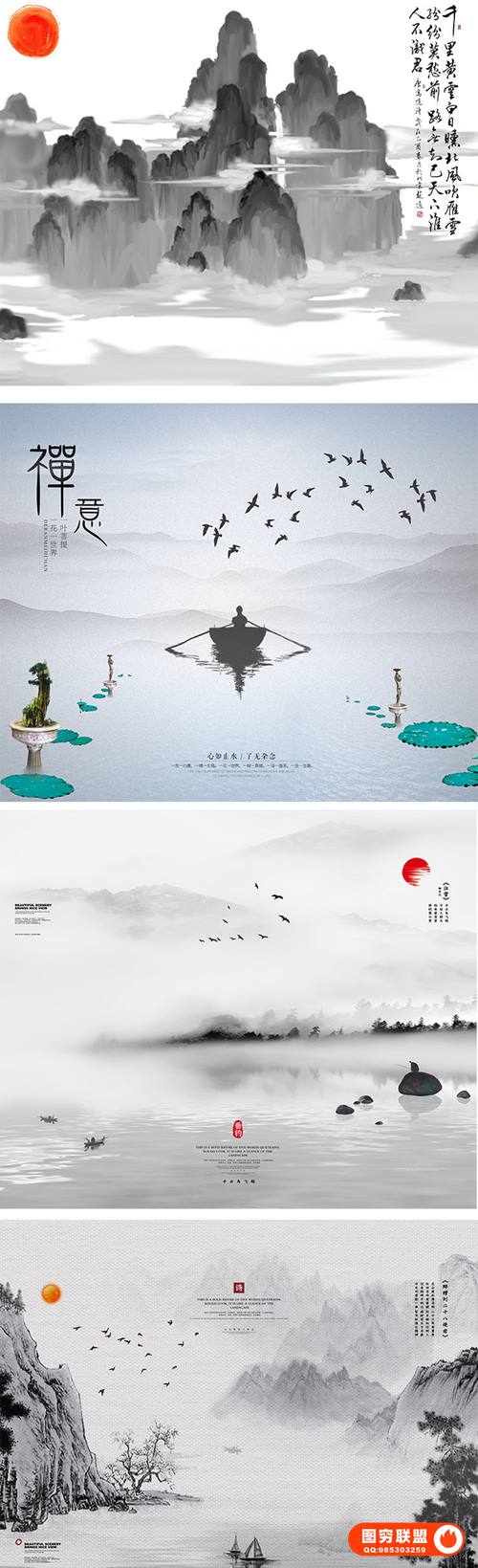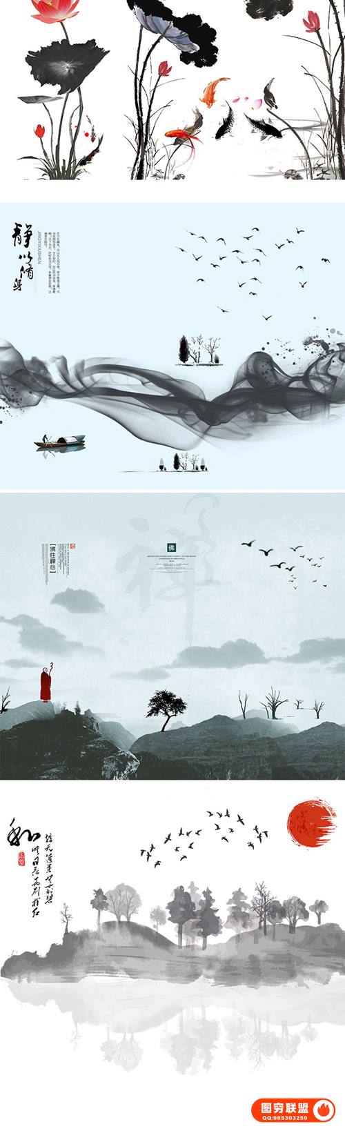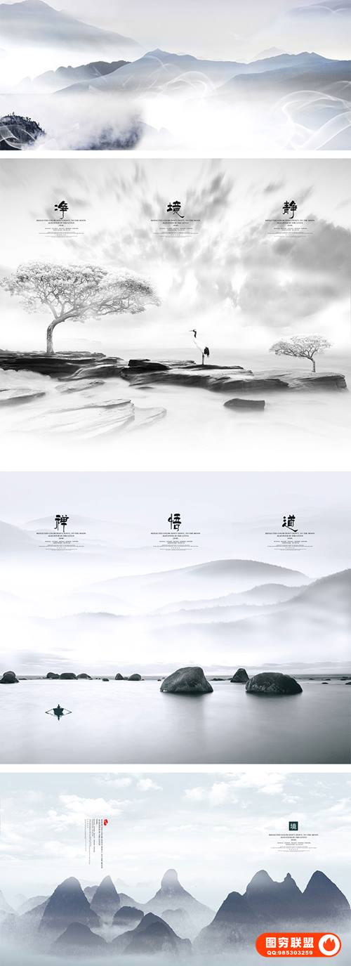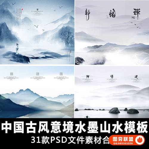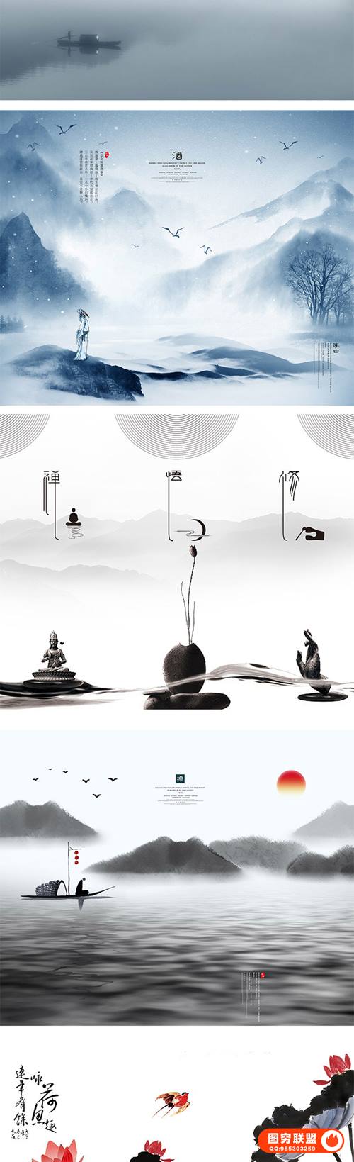 图穷联 » [PSD模板]中国古风古典禅意意境水墨山水画背景PSD海报模版