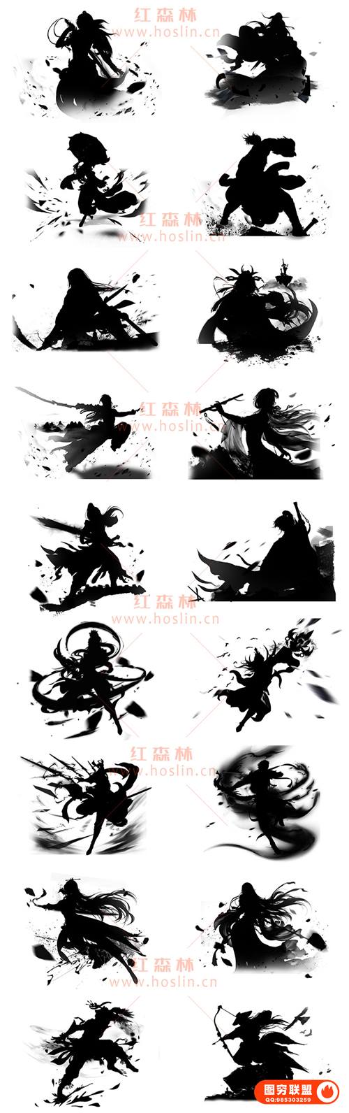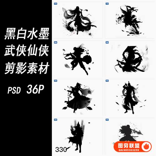 图穷联 » [PSD模板]古风黑白水墨国风武侠仙侠侠客游戏形象剪影透明免抠PSD设计素材
