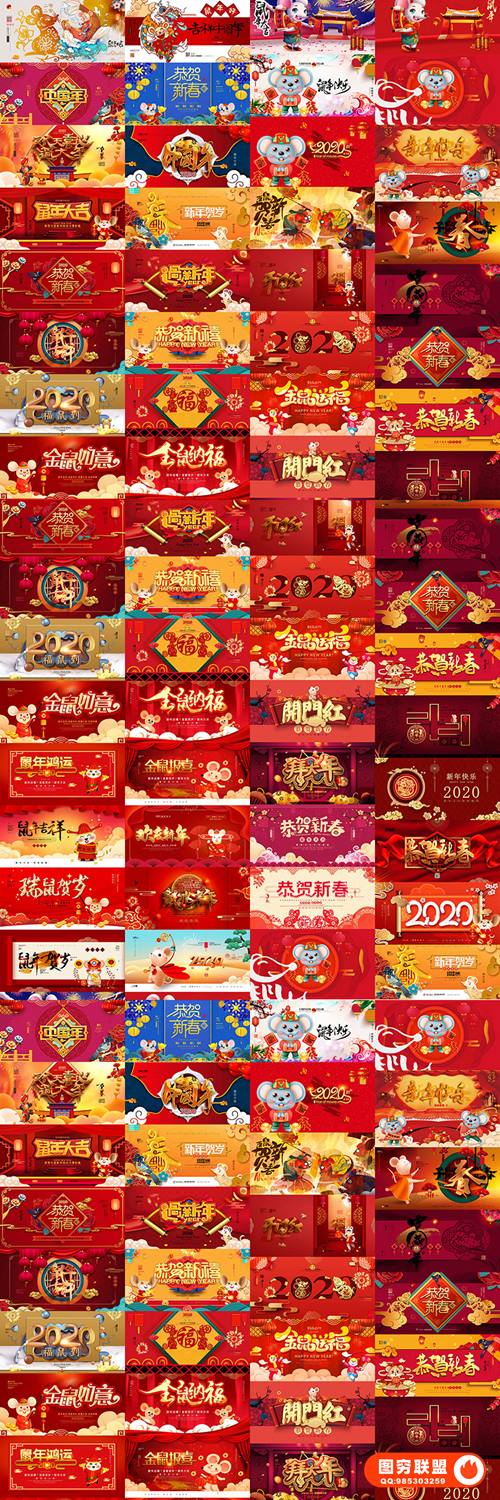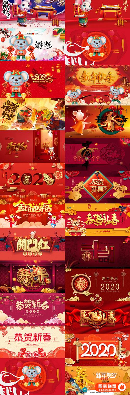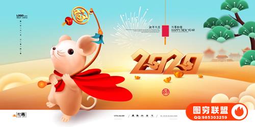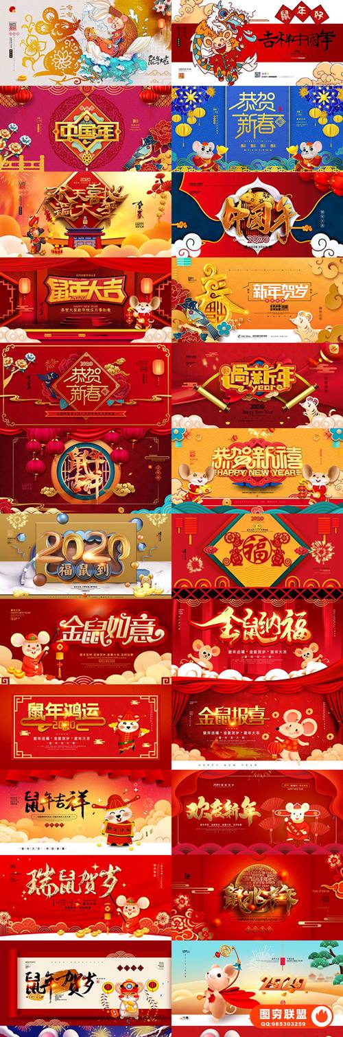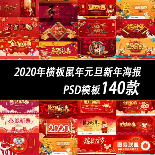图穷联 » [PSD模板]140款2020年全新横板鼠年元旦新年海报PSD模板