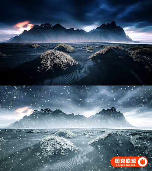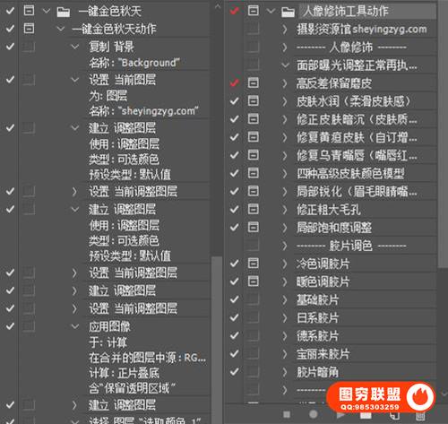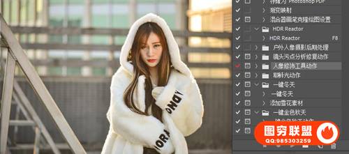 图穷联 » [PS动作]摄影师后期修图工具包5.0 磨皮美白户外风光调色大光圈一键冬天雪花秋天