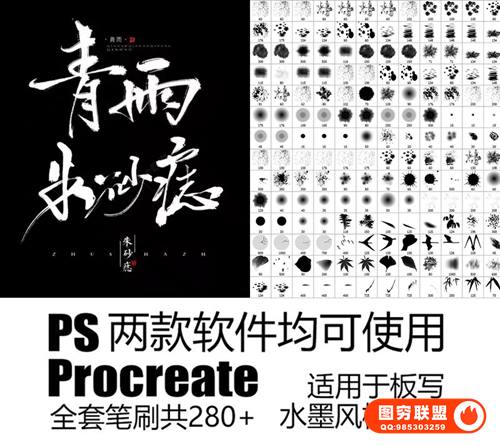 图穷联 » [PS笔刷字体]古风中国风字体中文字体+PS笔刷Procreate板绘笔刷板画毛笔水
