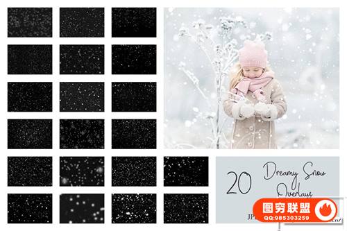 图穷联 » [图片素材/PS动作]梦幻冬季高清雪花冬季纹理叠加合成前景素材和PS特效动作 Win