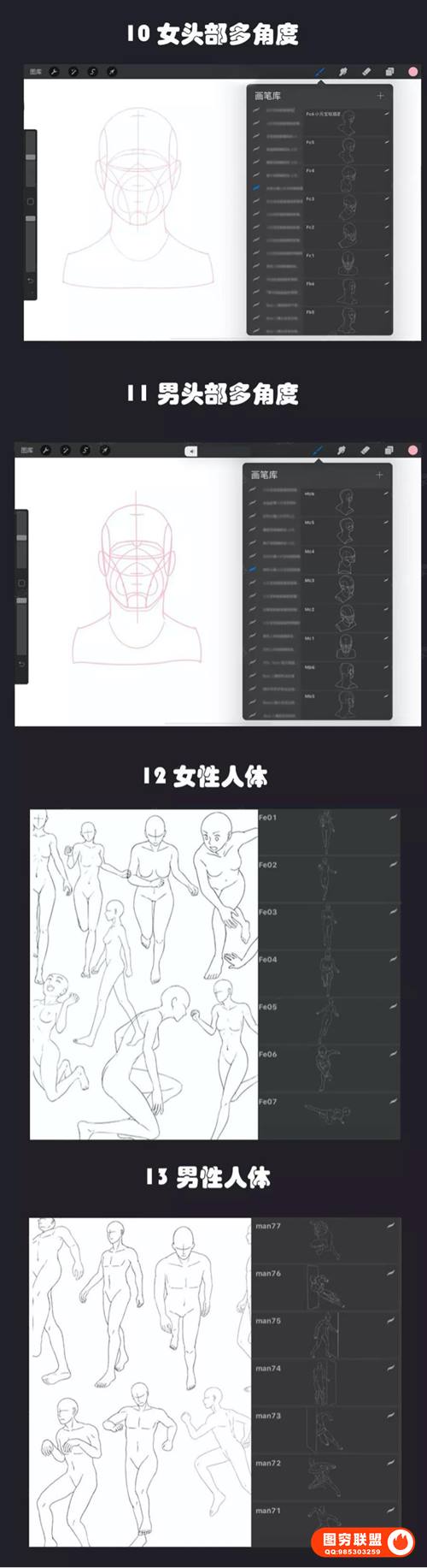 图穷联 » [板绘笔刷]iPad绘画Procreate最强人像辅助线神器+教程+素材
