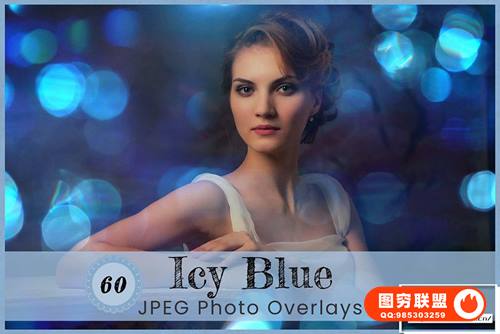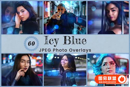 [图片素材]60组高分辨率蓝色散景自然光泄漏光斑效果叠加素材 60 Icy Bokeh Overlays Natural Light Leak