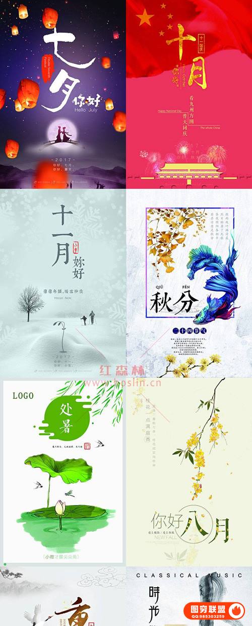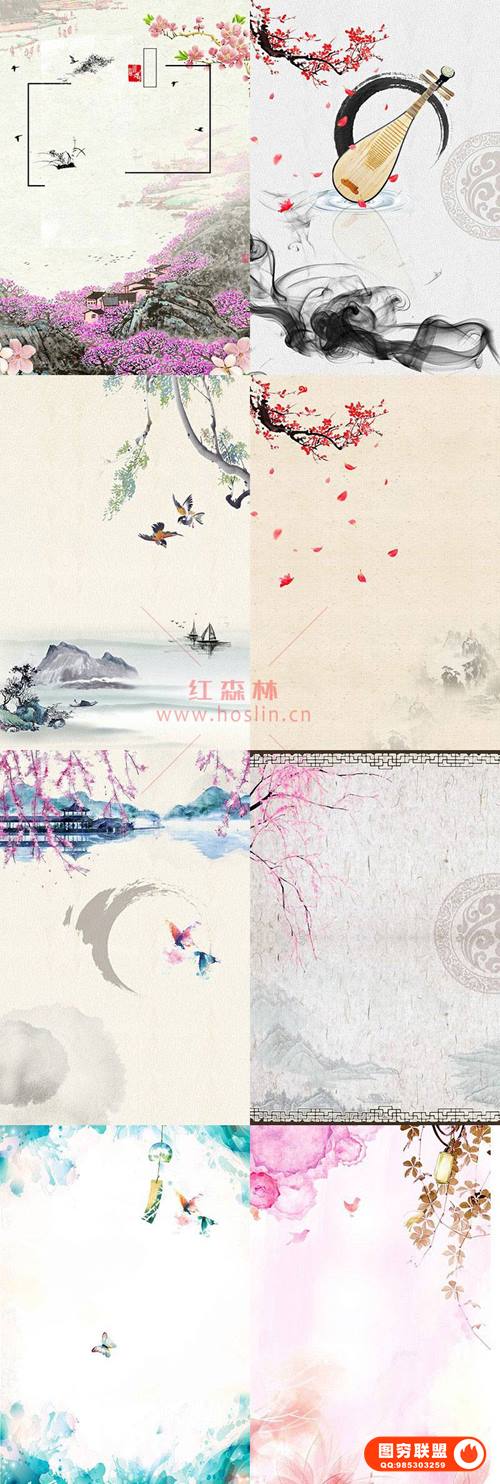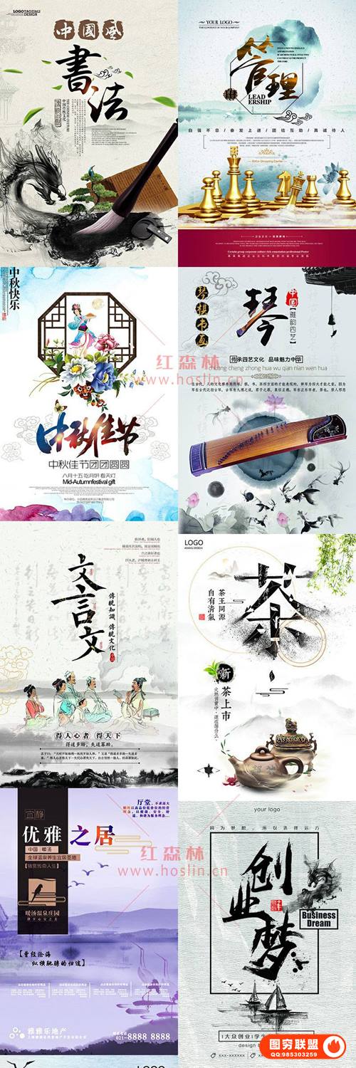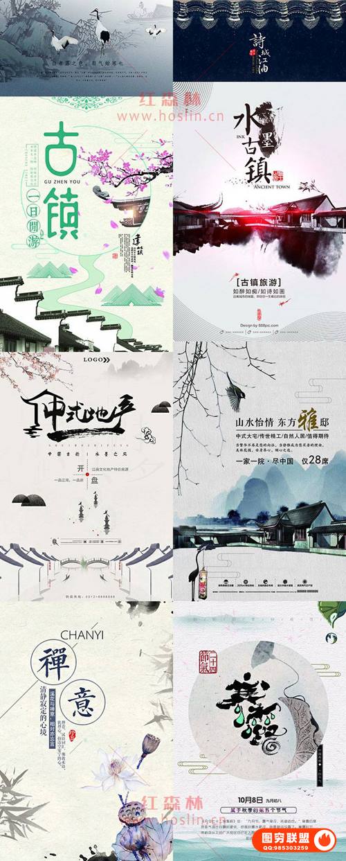 图穷联 » [PSD模板]77款中国风水墨古典古风禅意装饰画山水海报中式背景PS设计素材