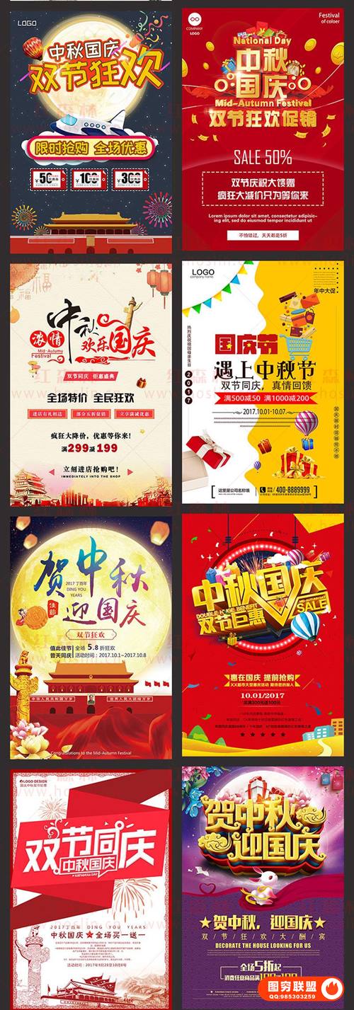图穷联 » [PSD模板]国庆中秋双节促销活动宣传单广告设计淘宝海报PSD模版