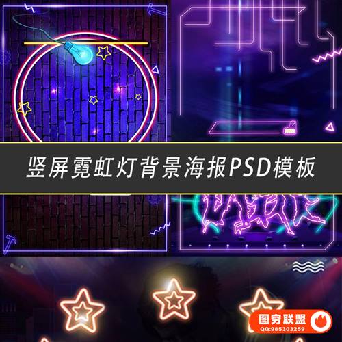 图穷联 » [PSD模板] 44款时尚渐变霓虹灯闪烁酷炫促销竖屏H5单页海报场景PSD模板素材