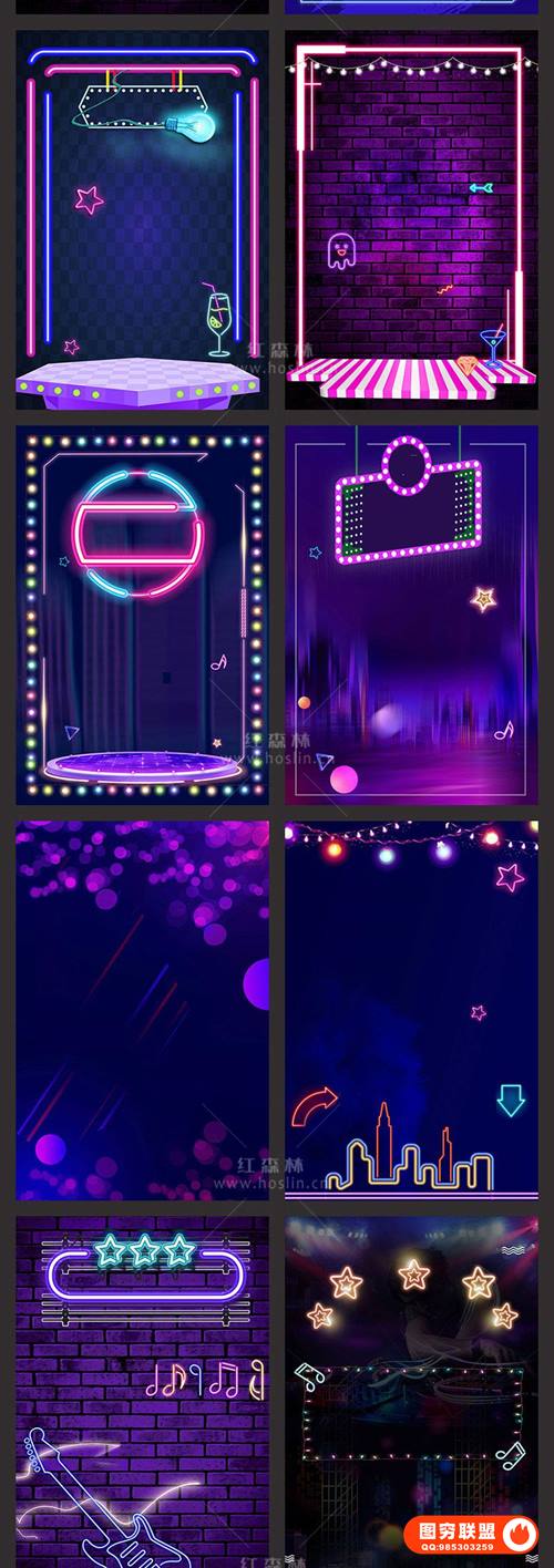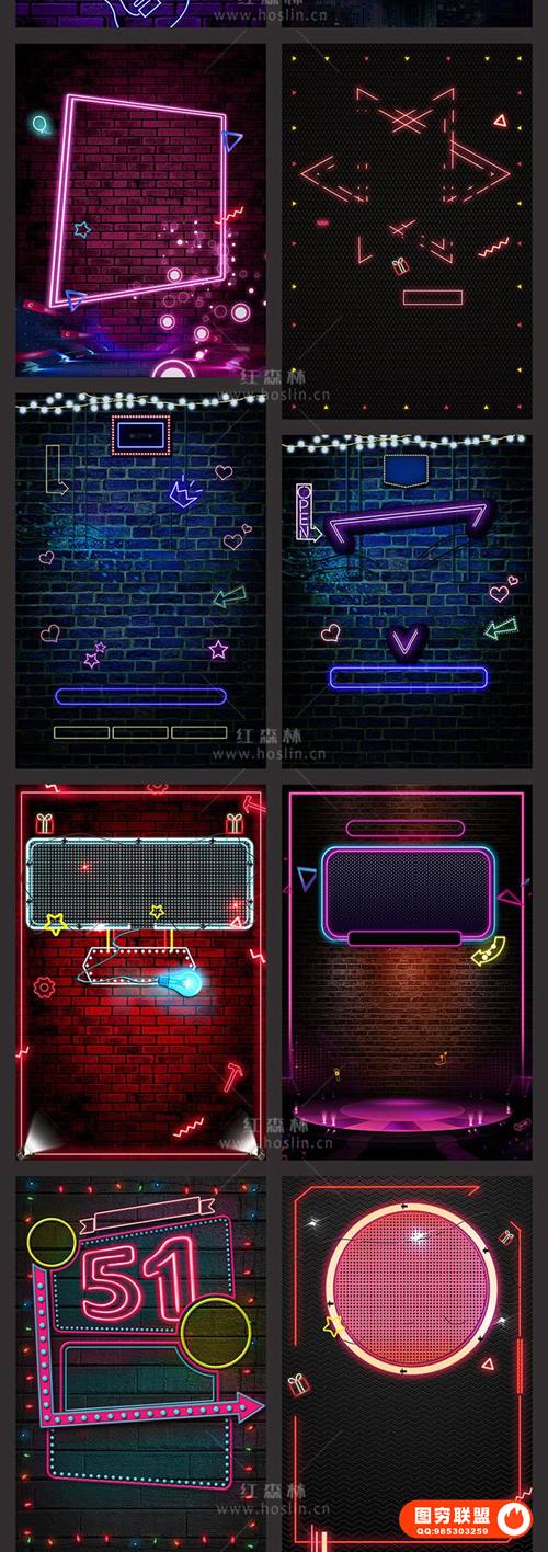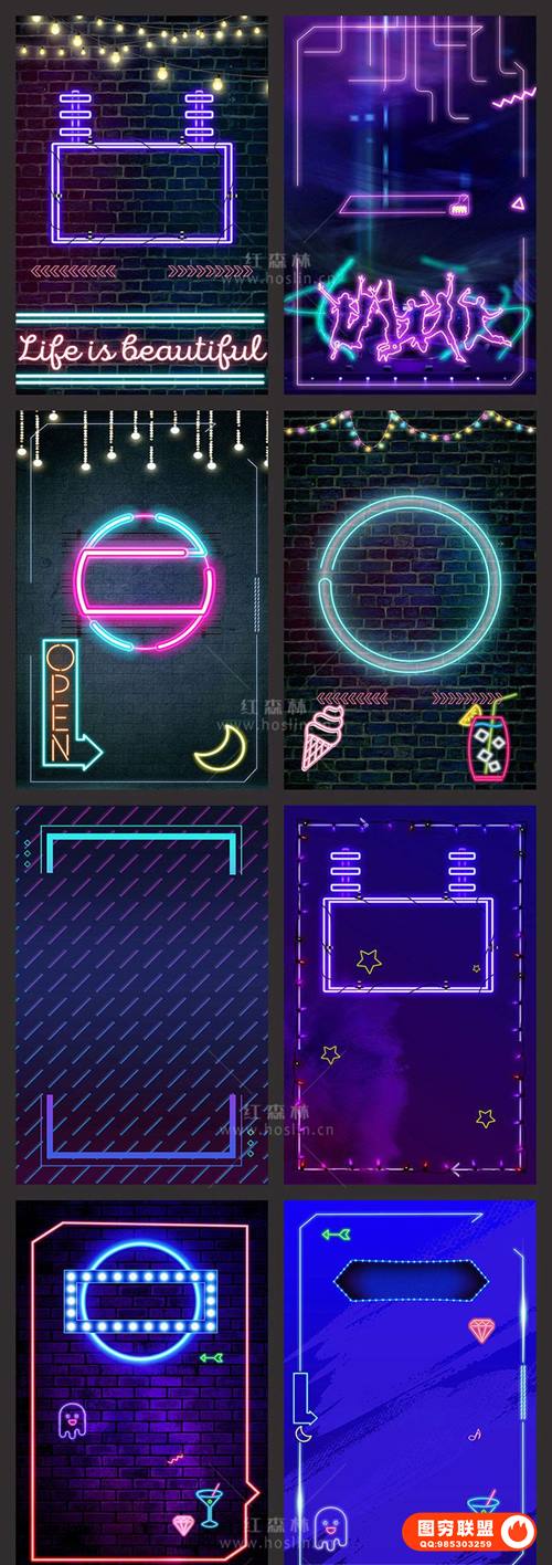 [PSD模板] 44款时尚渐变霓虹灯闪烁酷炫促销竖屏H5单页海报场景PSD模板素材