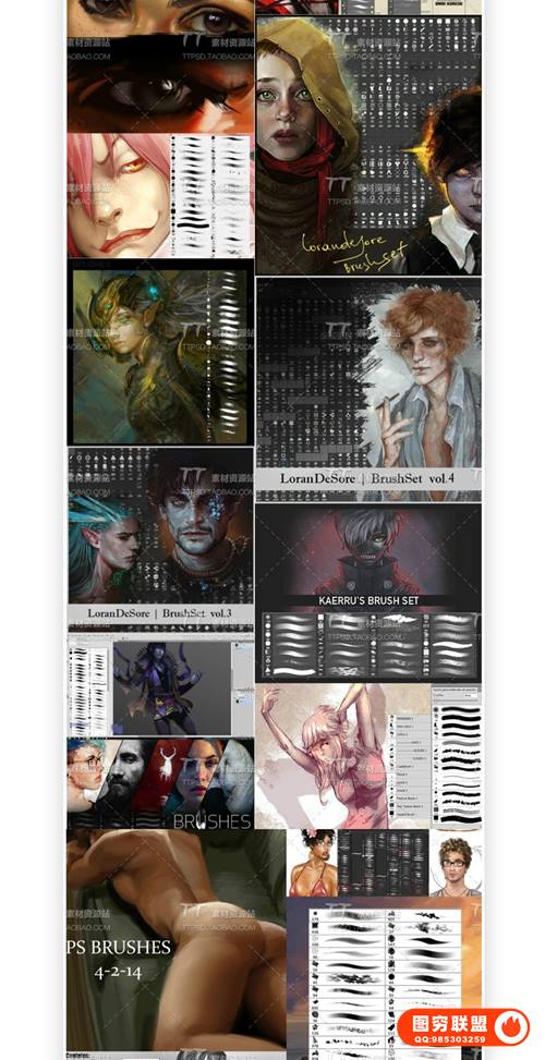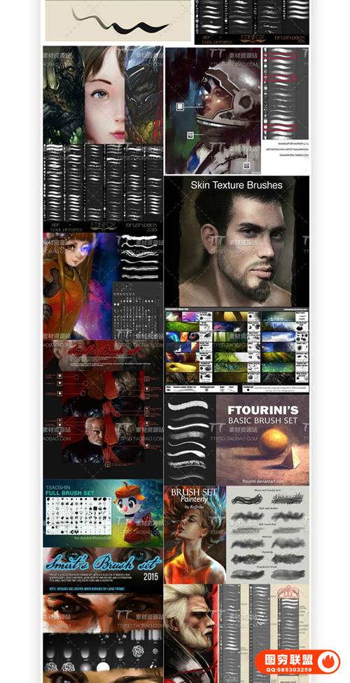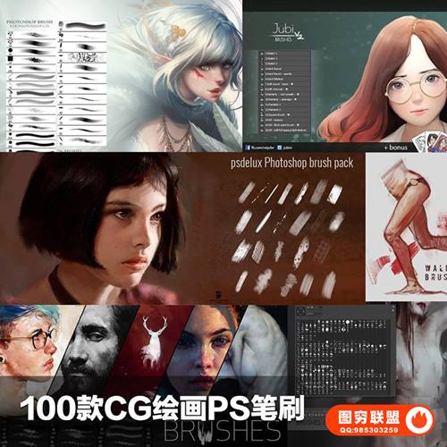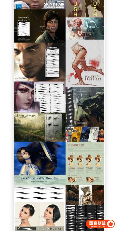 图穷联 » [PS笔刷]100组皮肤材质头发场景手绘游戏PS原画CG绘画插画笔刷素材