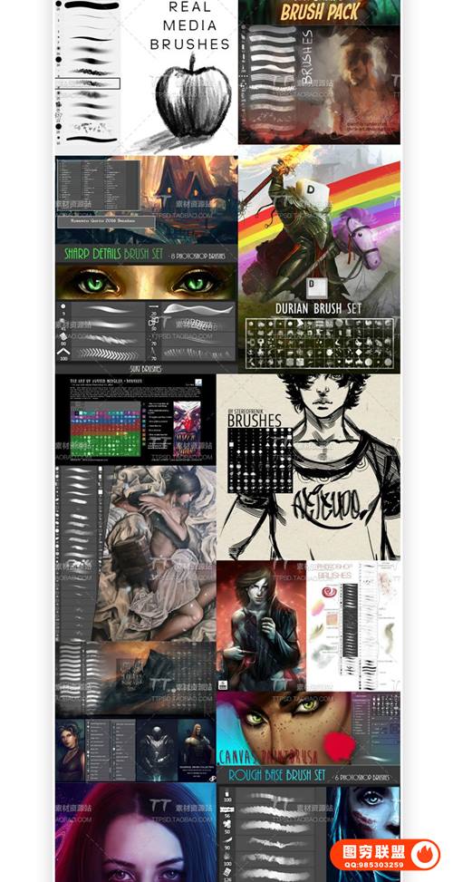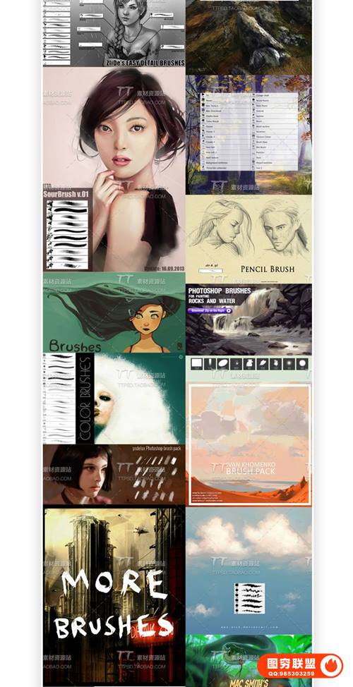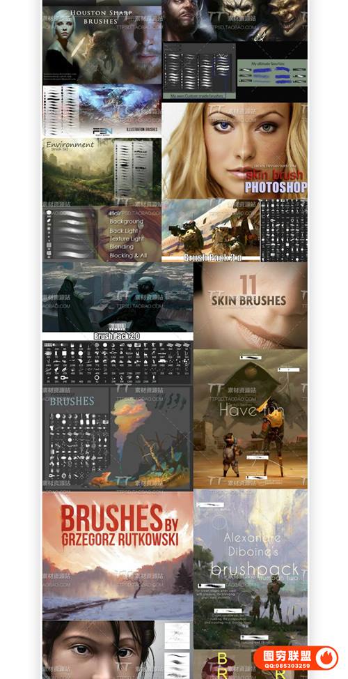 包含:皮肤、材质、头发、风景、手绘游戏、CG绘画、插画笔刷