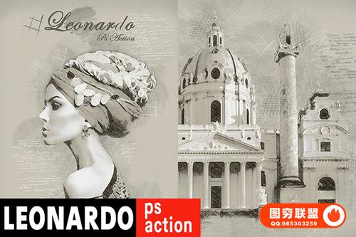 图穷联 » [PS动作]幅莱昂纳多·达芬奇绘画PS动作复古素描艺术效果 Leonardo Pho