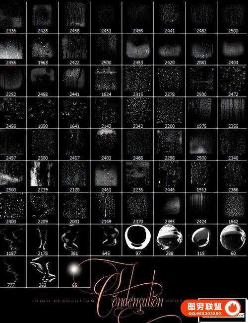 图穷联 » [PS笔刷]67款高清逼真玻璃水珠凝露水滴水雾雨水PS笔刷ABR画笔预设 Rons
