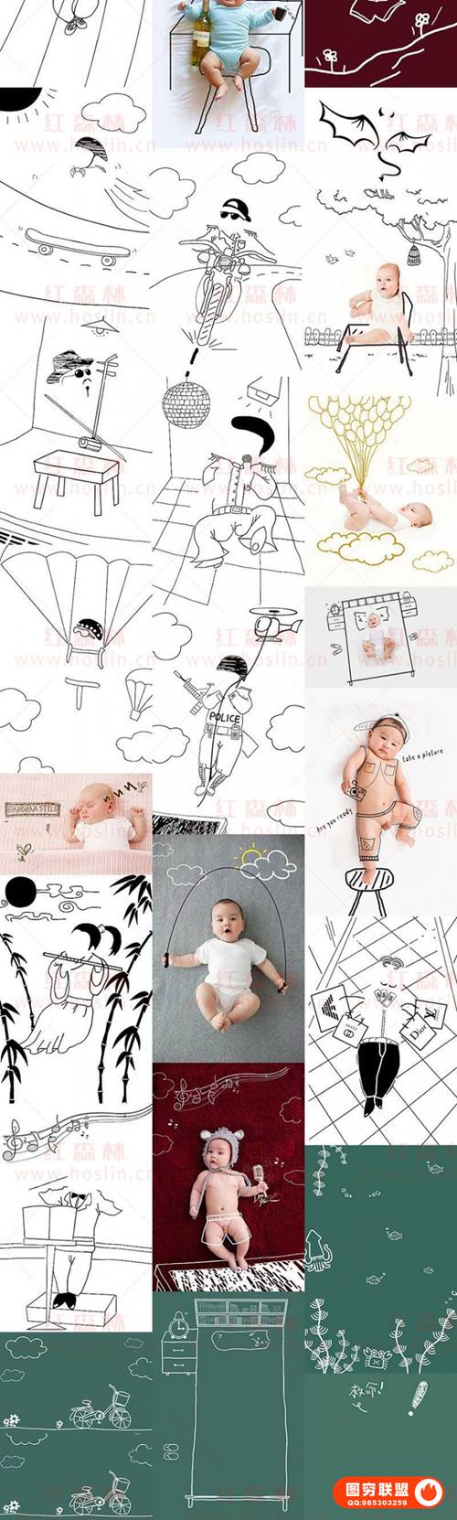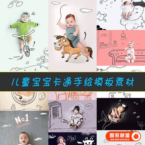 图穷联 » [PSD模板]儿童宝宝婴儿相册卡通手绘涂鸦插画线条设计素材PSD模板