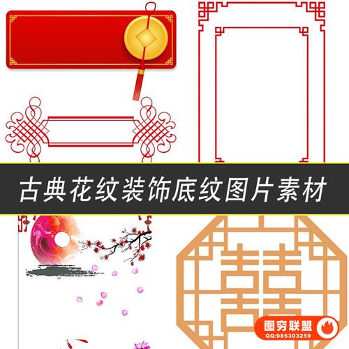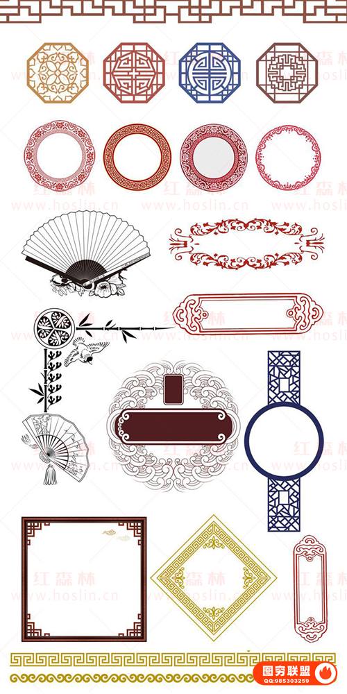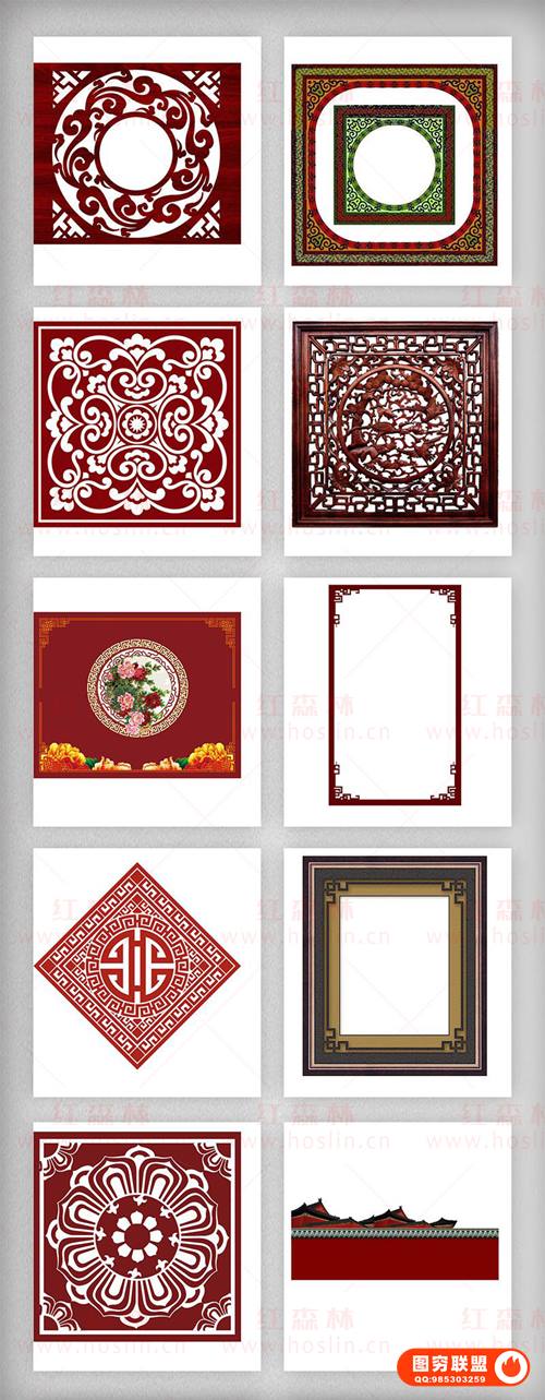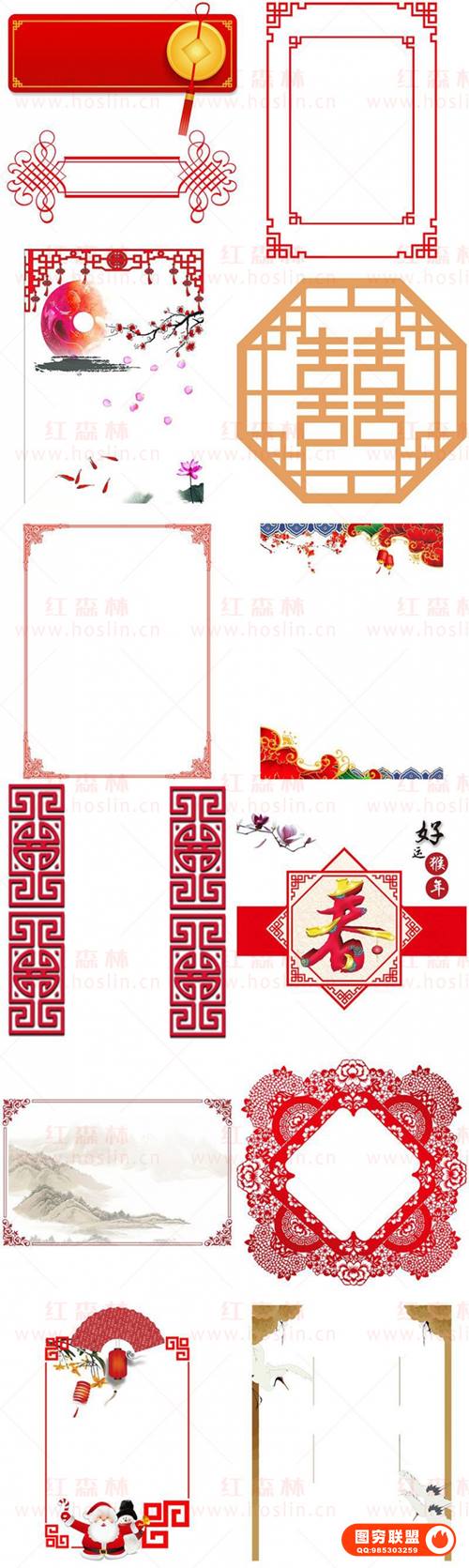 包含窗花、古典元素、红色边框、祥云、中国风标题边框、中式古典祥纹边框